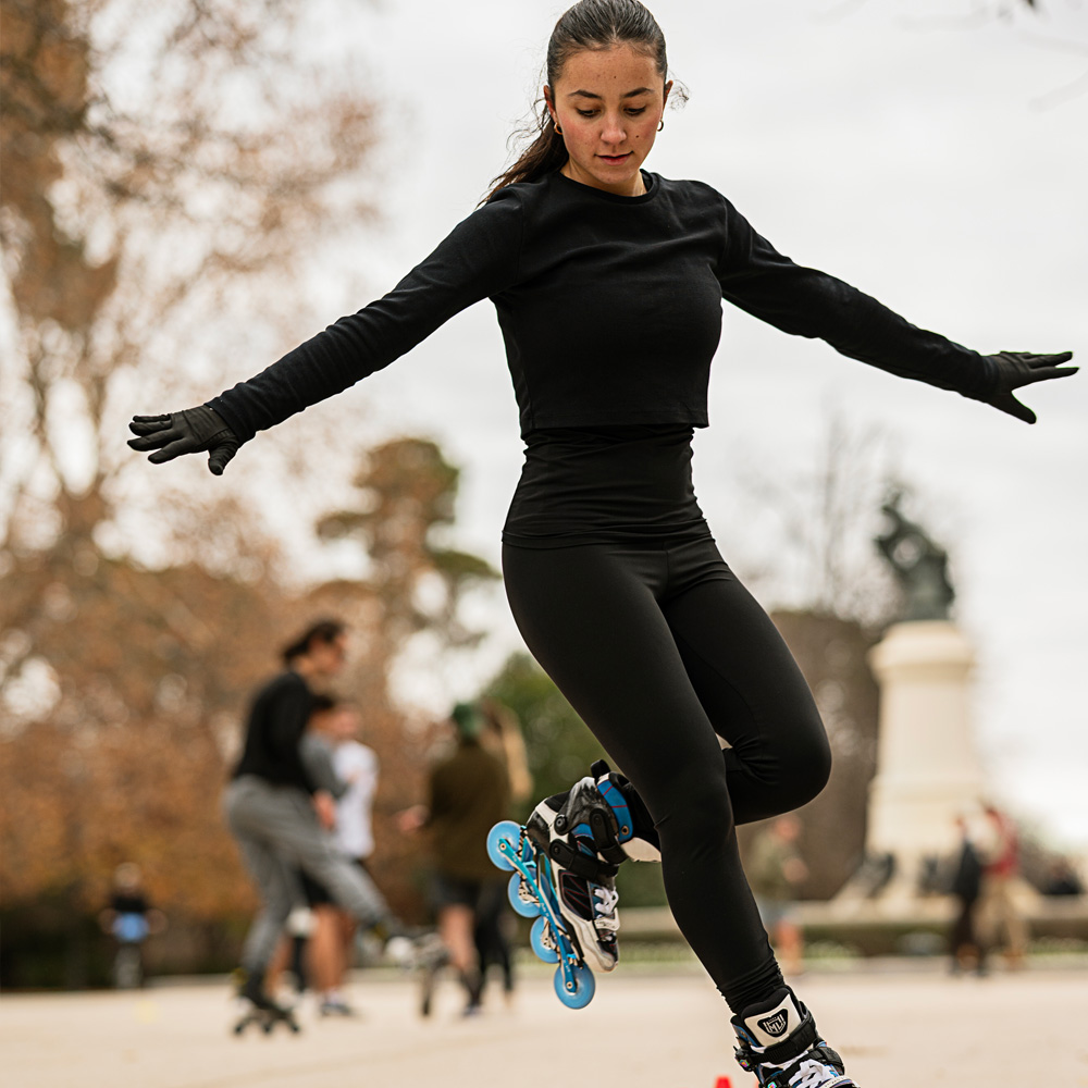 Hii! I’m Alexandra Muntean (@_alexandram_17), a freestyle slalom skater from Spain! I started skating in 2017 and since then, this sport became my passion. I love training, competing all around the world and challenging myself everyday to get stronger! My disciplines are classic and battle.