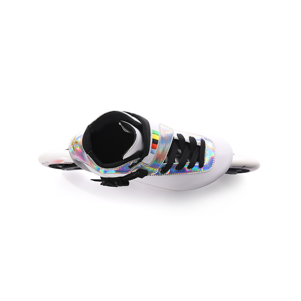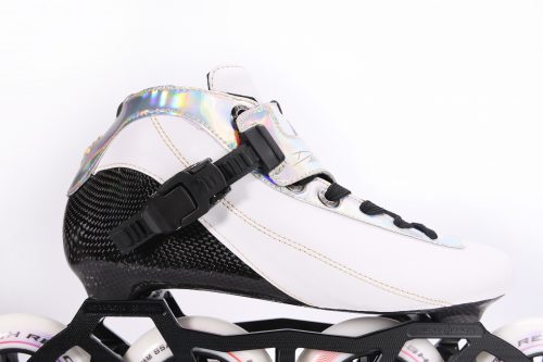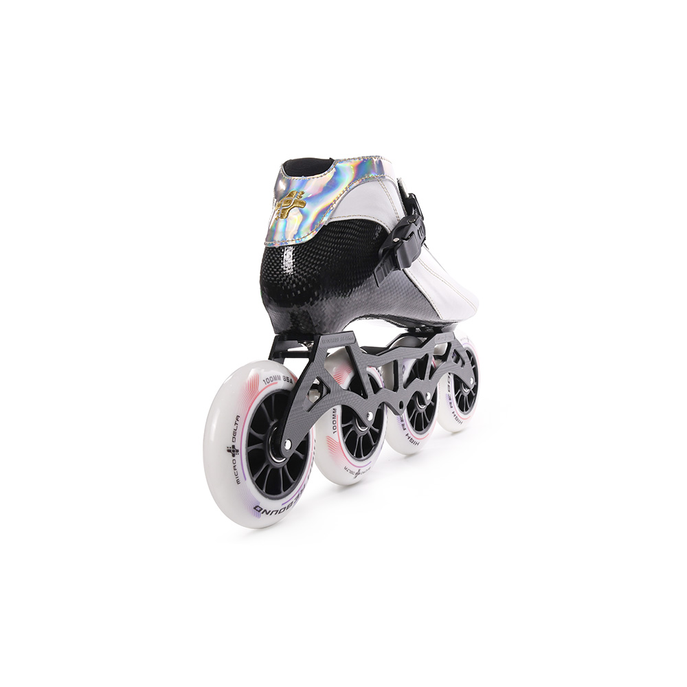 The lightweight carbon fiber shell offers exceptional support with minimal weight, maximizing energy transfer with every stride. A durable SureLatch ankle buckle ensures the boot remains securely closed under impact. The 5-hole CNC frame allows quick and effortless switching between 3- and 4-wheel setups, adapting seamlessly to different skating needs.